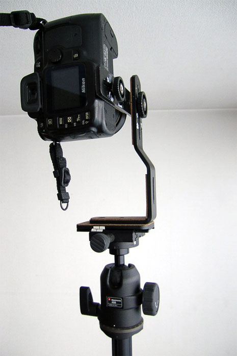 ぼくのパノラマ作品で初期の多くのものは、この写真でボール雲台をNovoflexのパノラマプレートに置き換えたセットで撮影されています。ブラケットプレートのネジが溝に対してアソビが小さくなるようにネジにテープを巻いたり、ネジがいつも溝の中で同じ位置にあるように固定したり、締め付けネジもやや大きめのものに変えて締め付けやすくしたり、いろいろと工夫することでそれなりに使えるものになっています。ちなみにNovoflexのパノラマプレートは動きはスムーズですが、たぶん薄い構造のせいだと思いますが、回転させたときにカメラの重さでほんのわずかですが、回転面が傾きます。水準器を乗せておくとわかります。そう言う意味ではマンフロの300Nは重いのが難ですが厚みがあるせいだとおもいますが、回転させても傾かないということでは信頼できます。上の488も傾かないという意味ではNovoflexよりいいのですが、ブラケットプレート程度ならいいのですが、これに303SPHをのせると、支柱の細さが不安になります。若干、振動するような感じですし。(ブラケット撮影中に水準器がわずかに揺れます)