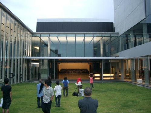ホールと中庭を同時に使って演出したスペクタクルな芝居を、