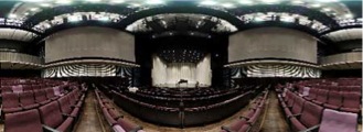 音響反射板と客席側のスクリーンがセッティングされている状態です。